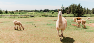 Authentic PEI Experience - enjoy a 90-minute journey into the world of alpaca farming and yarn making. Note, this is not a petting zoo experience.
